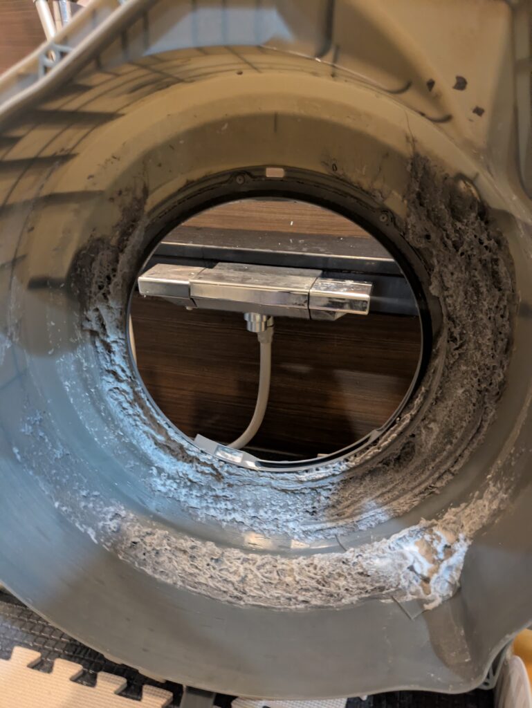 脱水受けカバーのダクト部分が完全に詰まっており、フィルターエラーの原因も特定致しました。